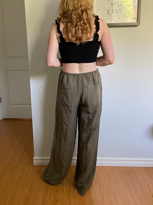 H&M Olive Green Linen Blend Wide Leg Drawstring Pants - Small/Medium