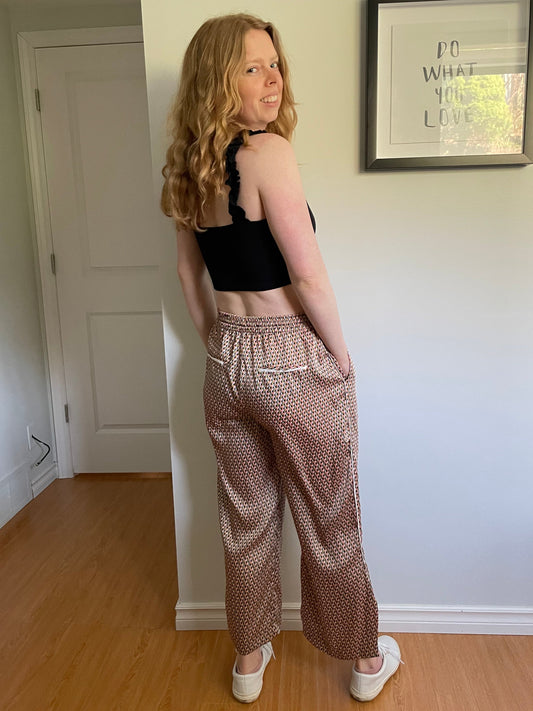 Zara Trafaluc Pink Green Grey Satin Cropped Print Pants - S/M
