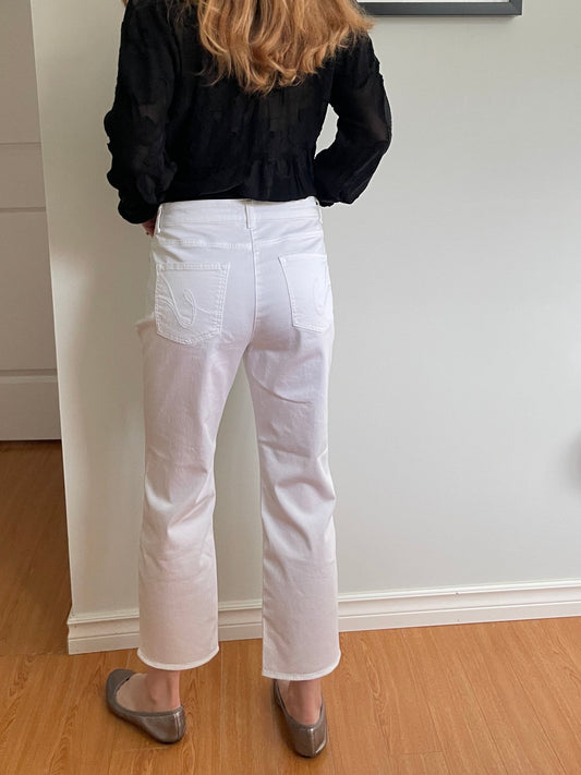 Olsen White Stretch Cropped Straight-Leg Pants - Size 8