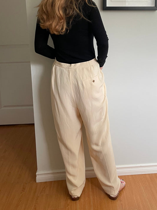 Evan-Picone Cream Vintage Silk Wide-Leg Lined Pants - 14W