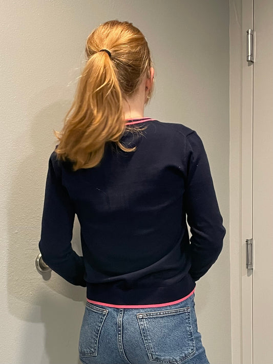 Crew Navy Cotton Cardigan with Pink Trim – Small