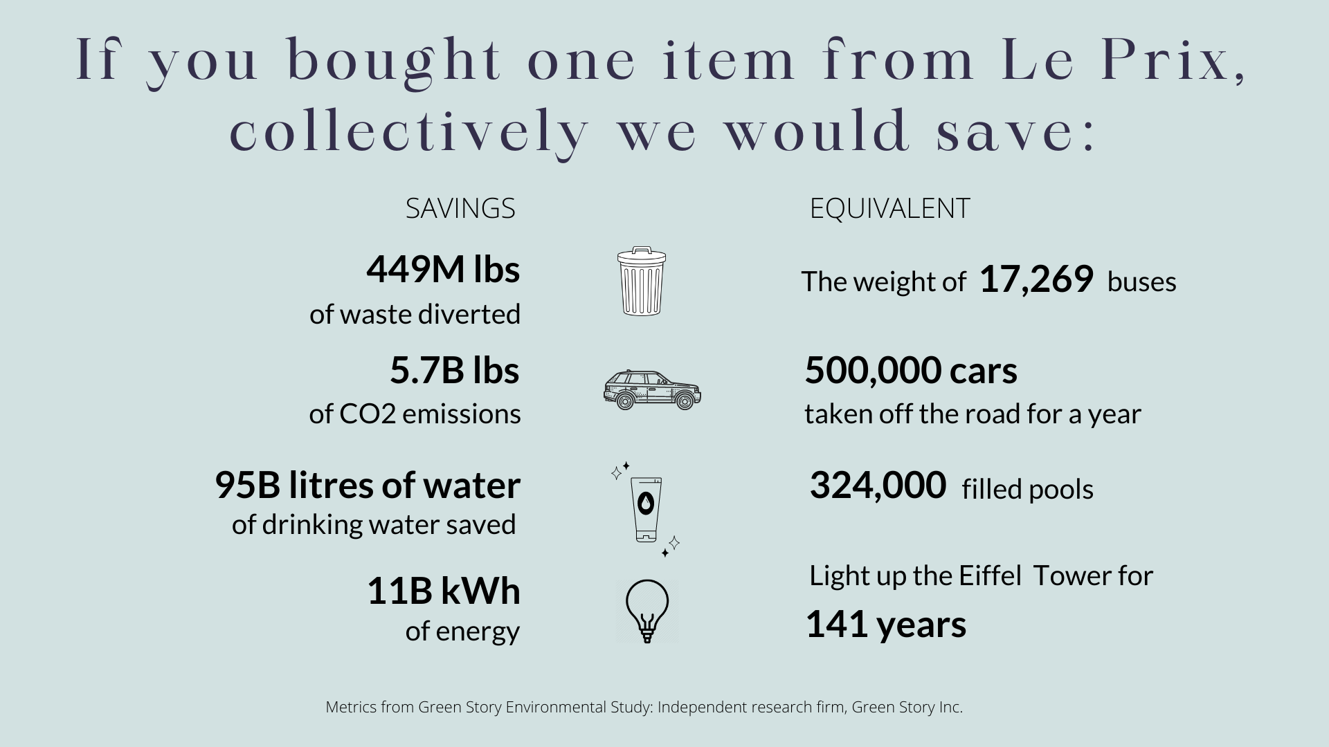 Le Prix is a social enterprise dedicated to promoting sustainable fashion. Each purchase helps reduce environmental impact and supports a greener future. Our founder and fashion stylist, Robyn, carefully curates premium thrifted pieces from across Canada, her #LePrixTravels, local donations, and eco-friendly Canadian brands. We are proud to give back to the community through education, public speaking, mentorship, and meaningful collaborations. By championing sustainability and self-love, we’ve achieved carbon-neutral online orders and successfully diverted over 3.4 tonnes of waste from landfills. Shop with us to embrace eco-friendly fashion and make a positive impact.