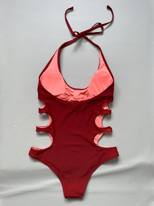 Aerie Rust Red Cutout Plunge Halter Cheeky One Piece Swimsuit NWOT - Small