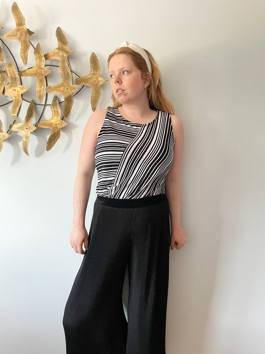 Anne Klein Black White Stripe Gathered Hem Sleeveless Top - Medium