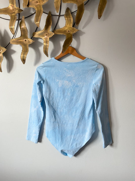 Upcycled Mangopop Light Blue Watercolour Map Long Sleeve Bodysuit - Medium