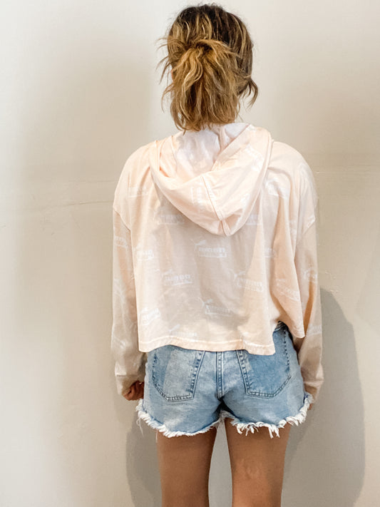 Puma Relaxed Fit Peach Cropped Hooded Long Sleeved Shirt - Large
