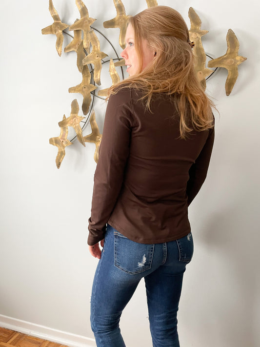 Hade Brown High Neck Thermal Sport Long Sleeve Top - Small