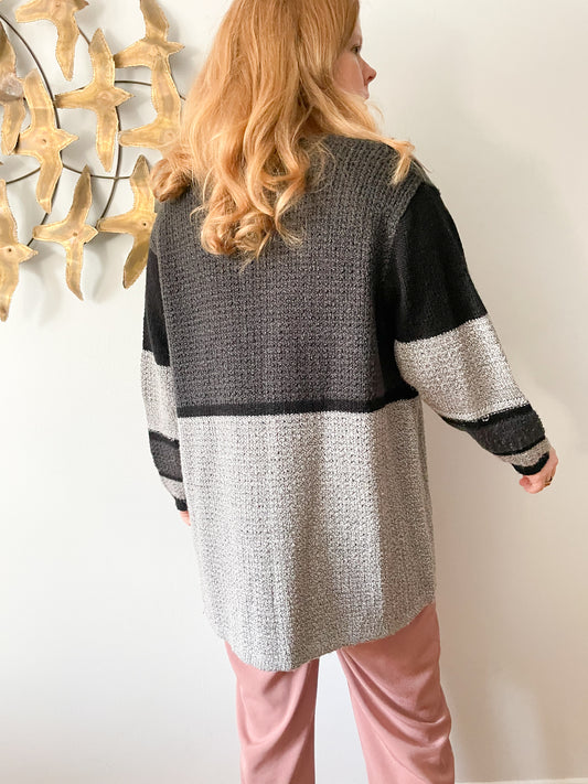 Alia Grey Patch Relaxed Knit Cardigan Sweater - L/XL