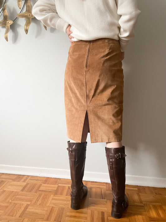 Danier Camel Leather Pencil Slit Skirt - Size 6