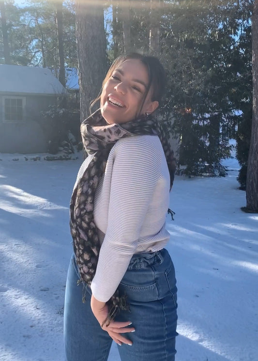 Dark Olive and Lilac Leopard Print Pashmina Fringe Scarf