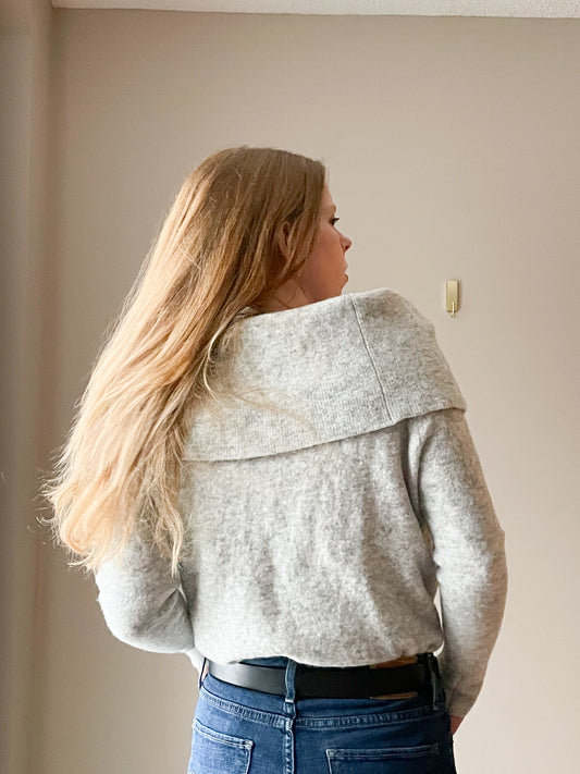Banana Republic Light Grey Wool Blend Over Shoulder Sweater - Medium