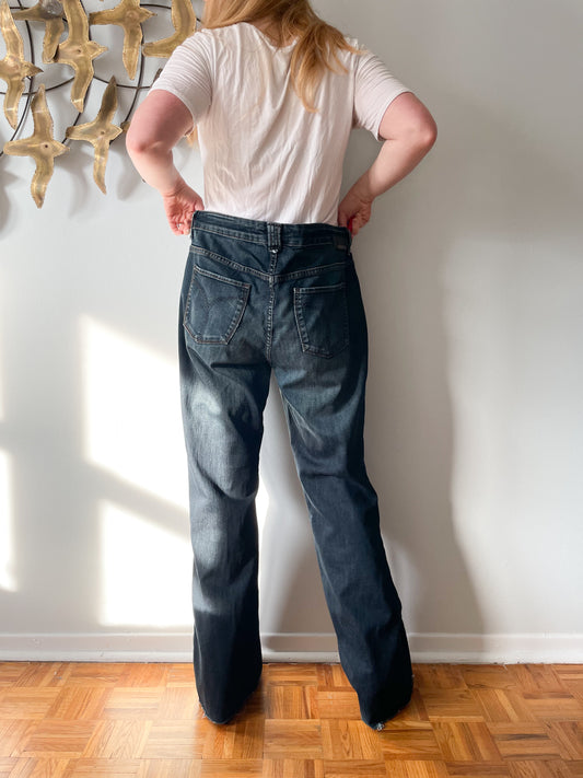 Dish Dark Wash High Rise Raw Hem Wide Leg Jean - Size 36