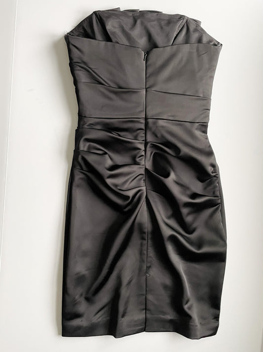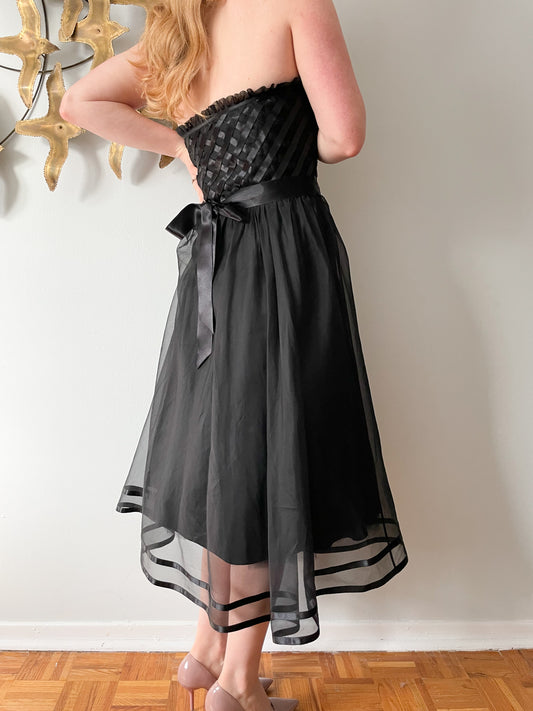 Laundry by Shelli Segal Black Silk Ruffle Ribbon Bodice Strapless Tea Length Dress - XS