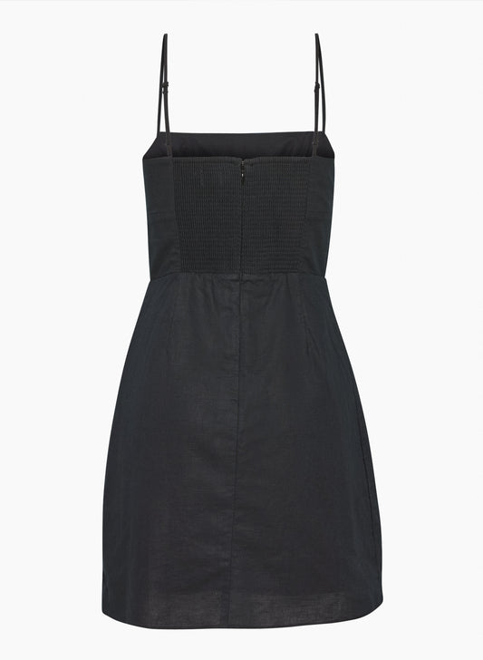 Sunday Best Quaint Black Linen Organic Cotton Mini Dress - XS