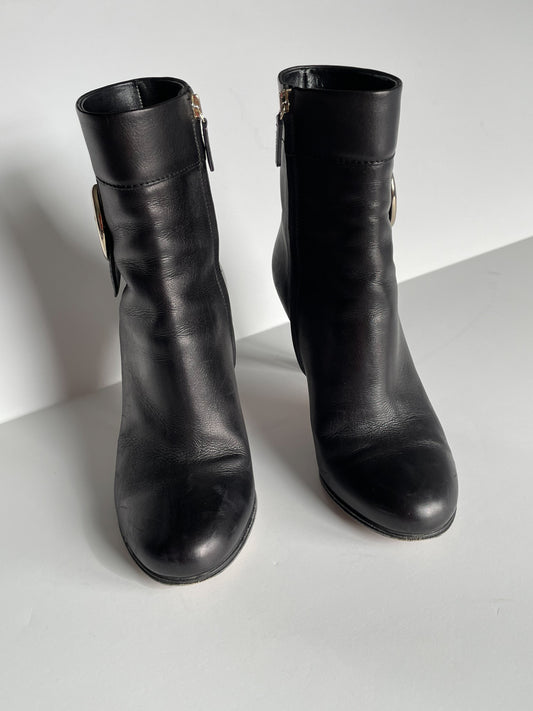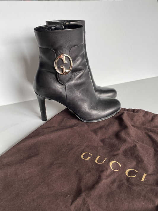 GUCCI Black Genuine Leather Silver Horsebit 3.75" Heels - Size 35