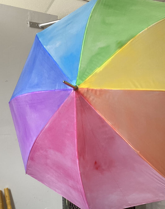 Rainbow Upcycled Hand Dyed Watercolour Umbrella - Vertical View