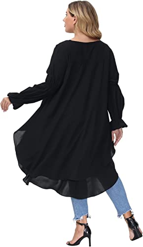 Hanna Nikole Black High Low Tunic Blouse with Lantern Sleeves NWT - Size 20W
