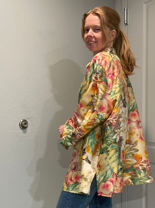 C.l.o.t.h.e.s. Woman Floral Silk Button-Up Shirt β 2X