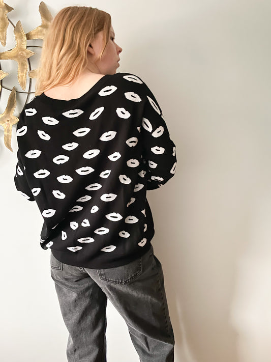 M Studio Black White Lip Graphic Print Crew Neck Sweater NWT - 2X