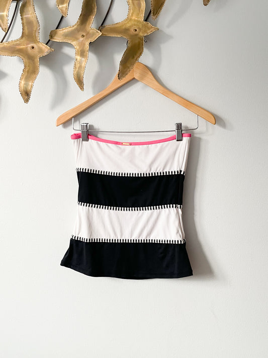 Anne Cole Black Pink Stripe Strapless Bandeaukini Swim Top - Small