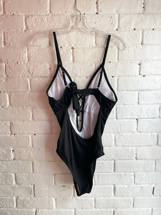 Black White Lace Cutout Open Back One Piece Swimsuit - XL