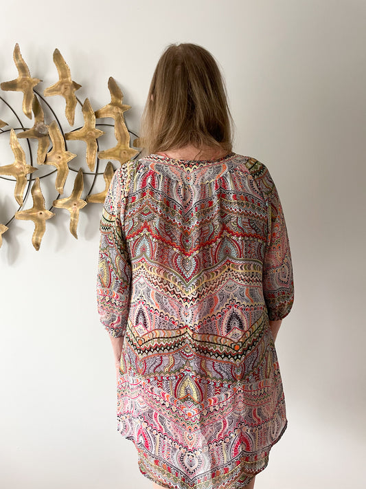 Jockey Rainbow Patterned Semi Sheer Beach Coverup Tunic Dress - Medium