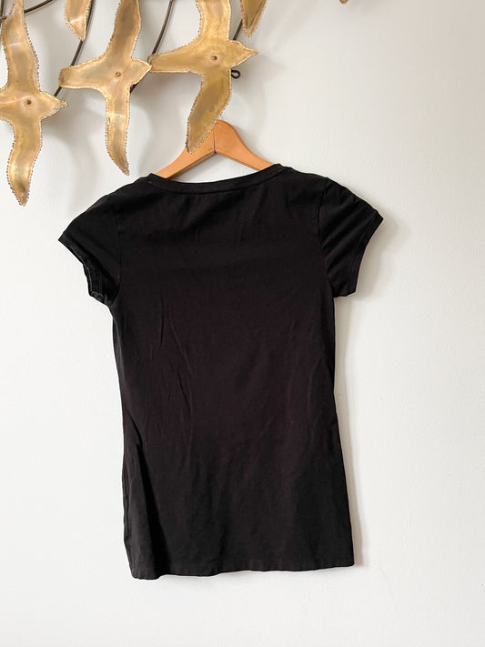 Smart Set Black Cotton Stretch V-Neck T-Shirt - Small