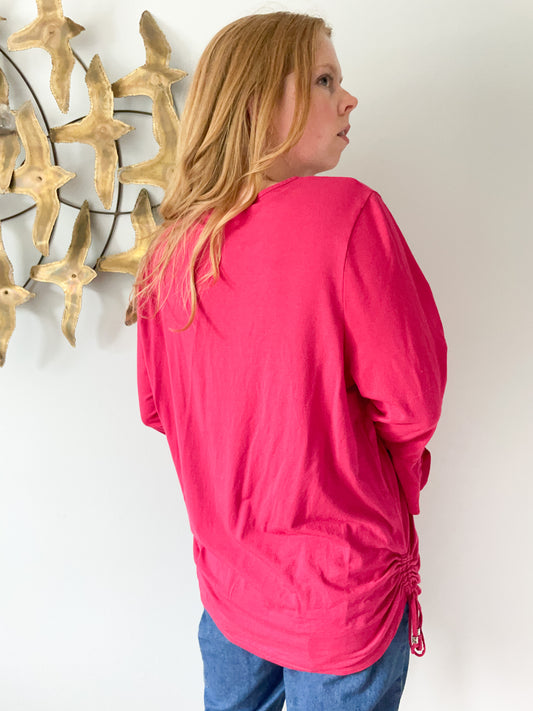 Laura Pink Cutout Neck Ruffle Sleeve Tunic - XL