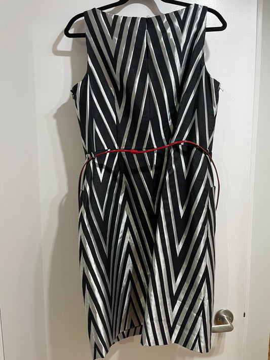 Nine West Black & Silver Chevron Sheath Dress with Red Belt – Size 14