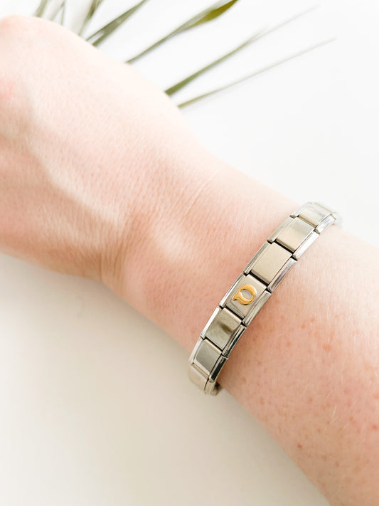 Silver Cool Links Stretch Bracelet with Gold "Q"