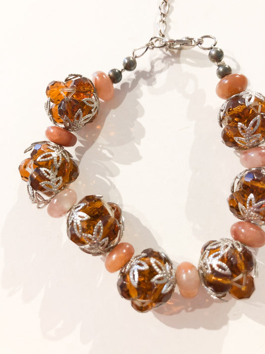 Amber Bead Cluster Bracelet with Silver Leaf