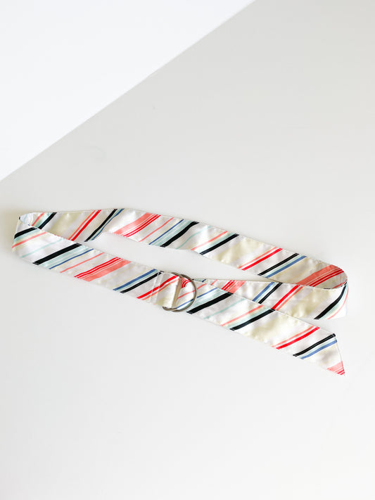 Colorful Striped White Satin Belt - Large