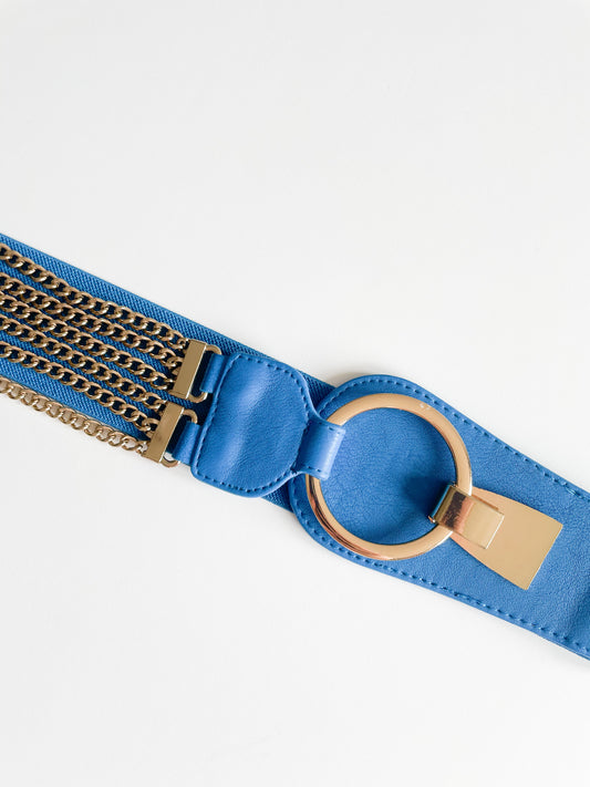 Blue and Gold Chain Stretch Waist Belt - M/L