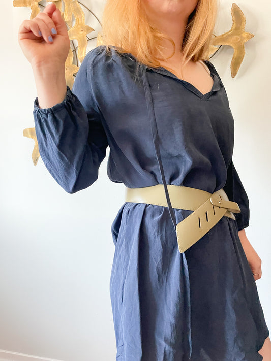 Emmanuel Vintage Leather Sage Taupe Asymmetrical Belt - S/M