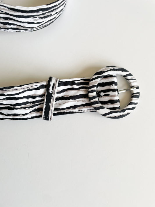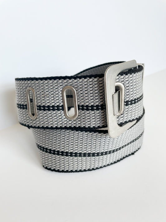 Grey Stripe Wide Belt - S/M