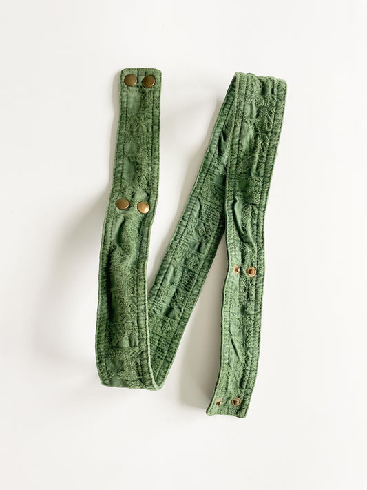 Green Embroidered Belt with Brass Snaps - Medium (33-38")