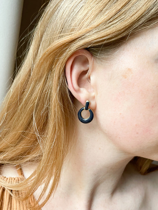 Vintage Black and Gold Statement Hoop Earrings
