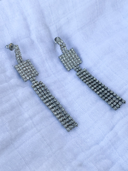 Silver Pave Crystal Dangle Fringe Earrings