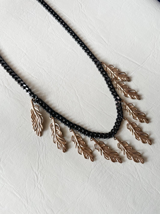Boho Peacock Feather & Metal Charm Necklace – Silver-Tone Chain