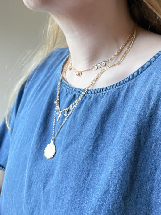 Gold Chain Blue Bead Cluster Delicate Necklace NWT