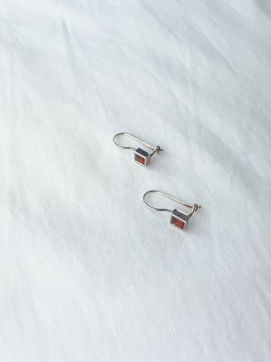 .925 Sterling Silver Garnet Delicate Dangle Hook Earrings