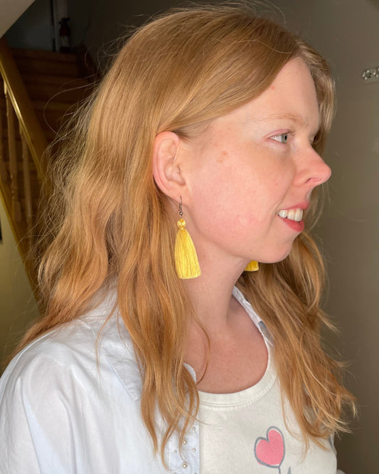 Handmade Recycled Paper & Silk Tassel Earrings Supporting Disabled Women in Laos