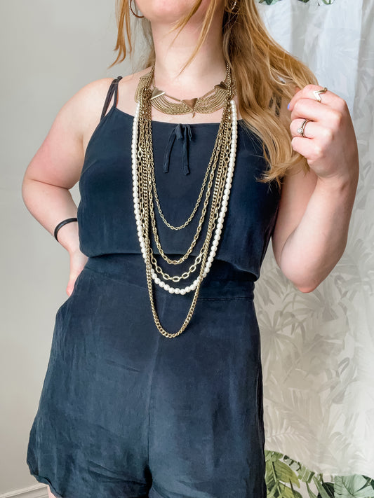 Faux Pearl Gold Chain Layered Long Necklace / Body Chain