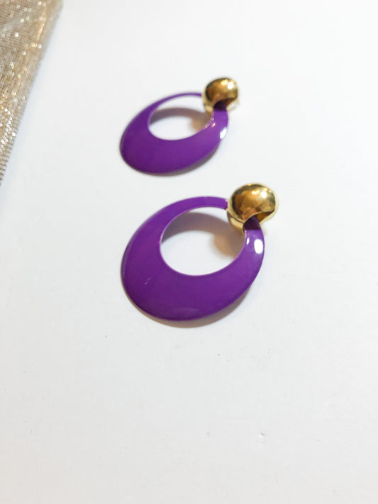 Tulum Vintage Purple and Gold Hoop Glam Earrings