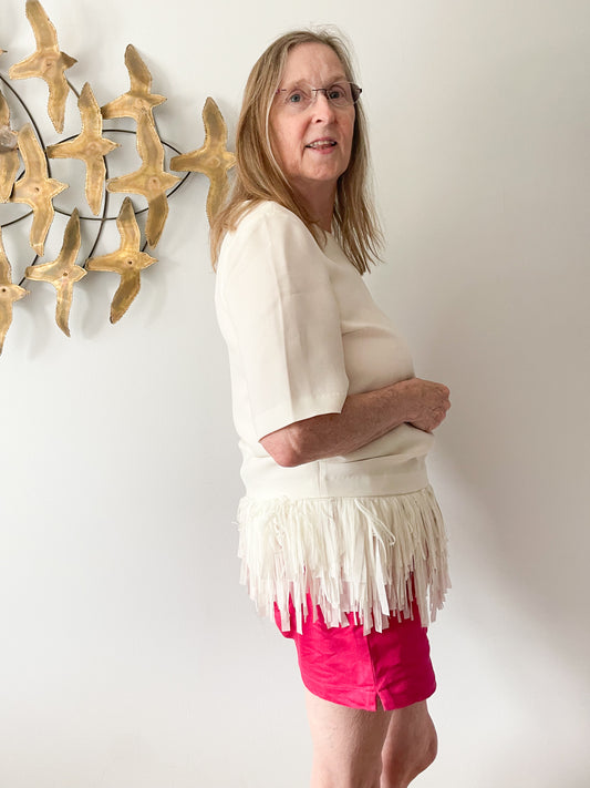 Banana Republic White Structured Top with Fringe Hem - S/M