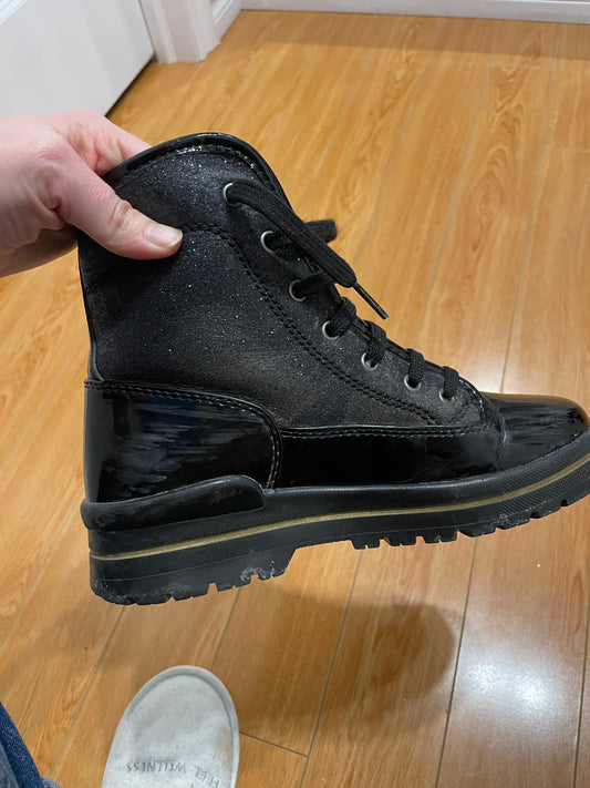Olang Black Glitter Patent Winter Boots with Flip Ice Grips ā Size 37