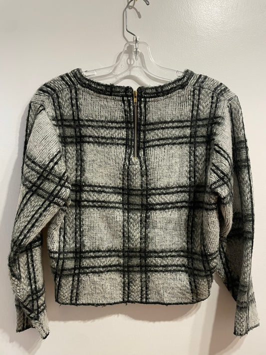 Plaid Grey & Black Acrylic Textured Knit Sweater with Back Zipper ā Medium
