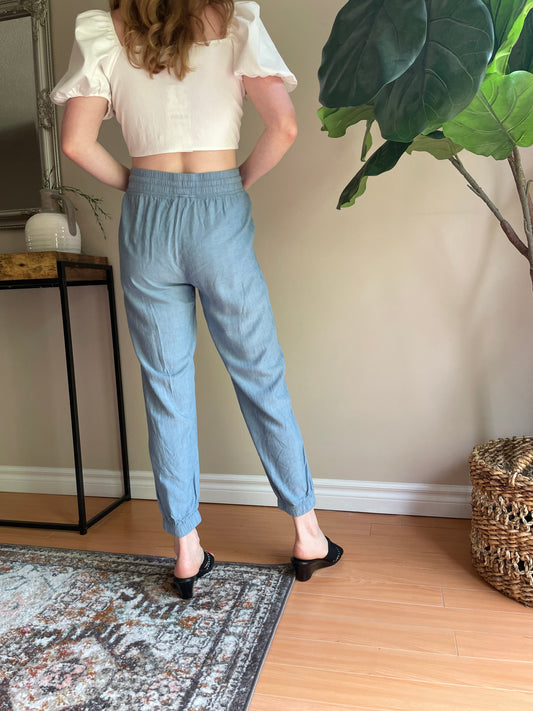 Covet Grey Tweed Striped Metallic High Rise Jogger Pants - Medium