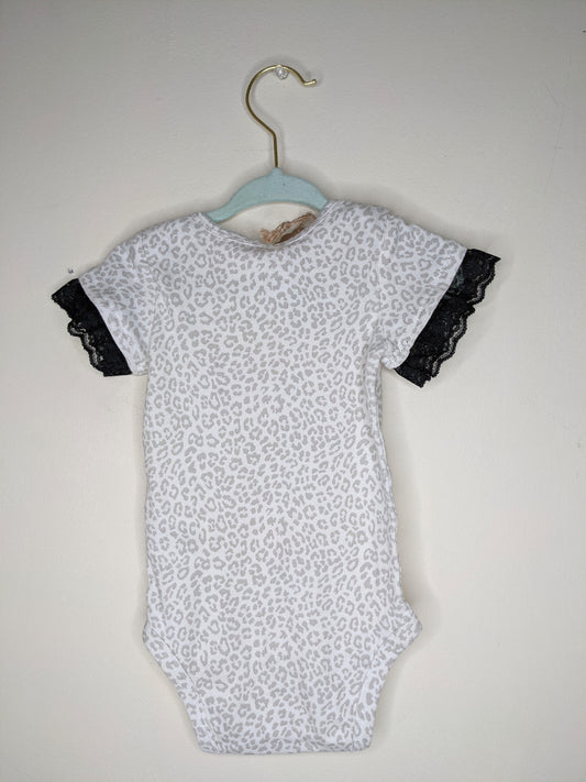 Grey Leopard Print Ballerina Lace Baby Bodysuit - 9 months