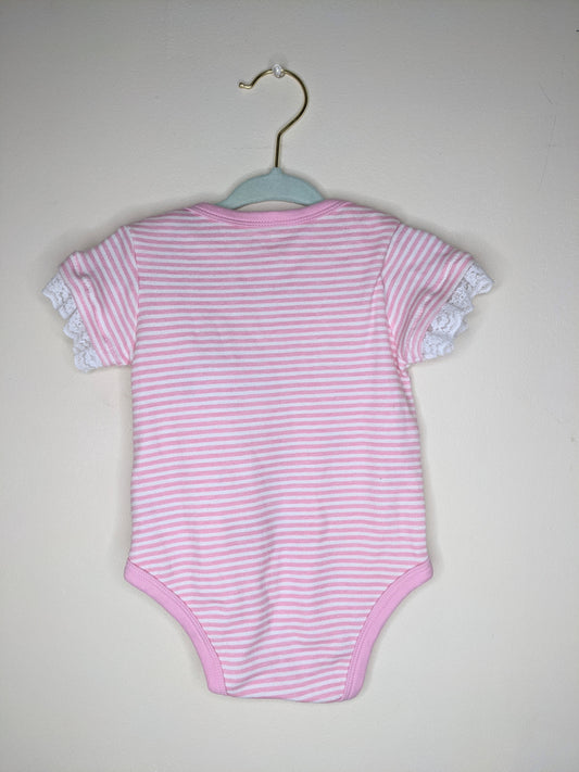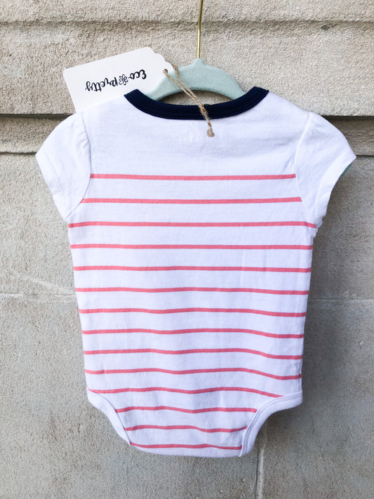Compass Pink Stripe Baby Bodysuit Upcycled by Eco Pretty - 3 Months